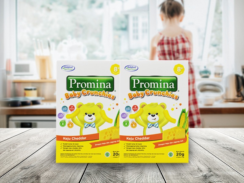 Saat berusia 8 bulan, kemampuan makan bayi sudah makin bagus. Bayi sudah bisa dikenalkan pada finger food (makanan yang dapat dijumput). Karena itu, untuk bayi di atas 8 bulan, ada Promina Crunchies dan Promina Puffs yang bisa dimakan sebagai selingan. Keduanya mudah lumer di mulut, jadi tidak perlu khawatir jika gigi si kecil belum tumbuh.